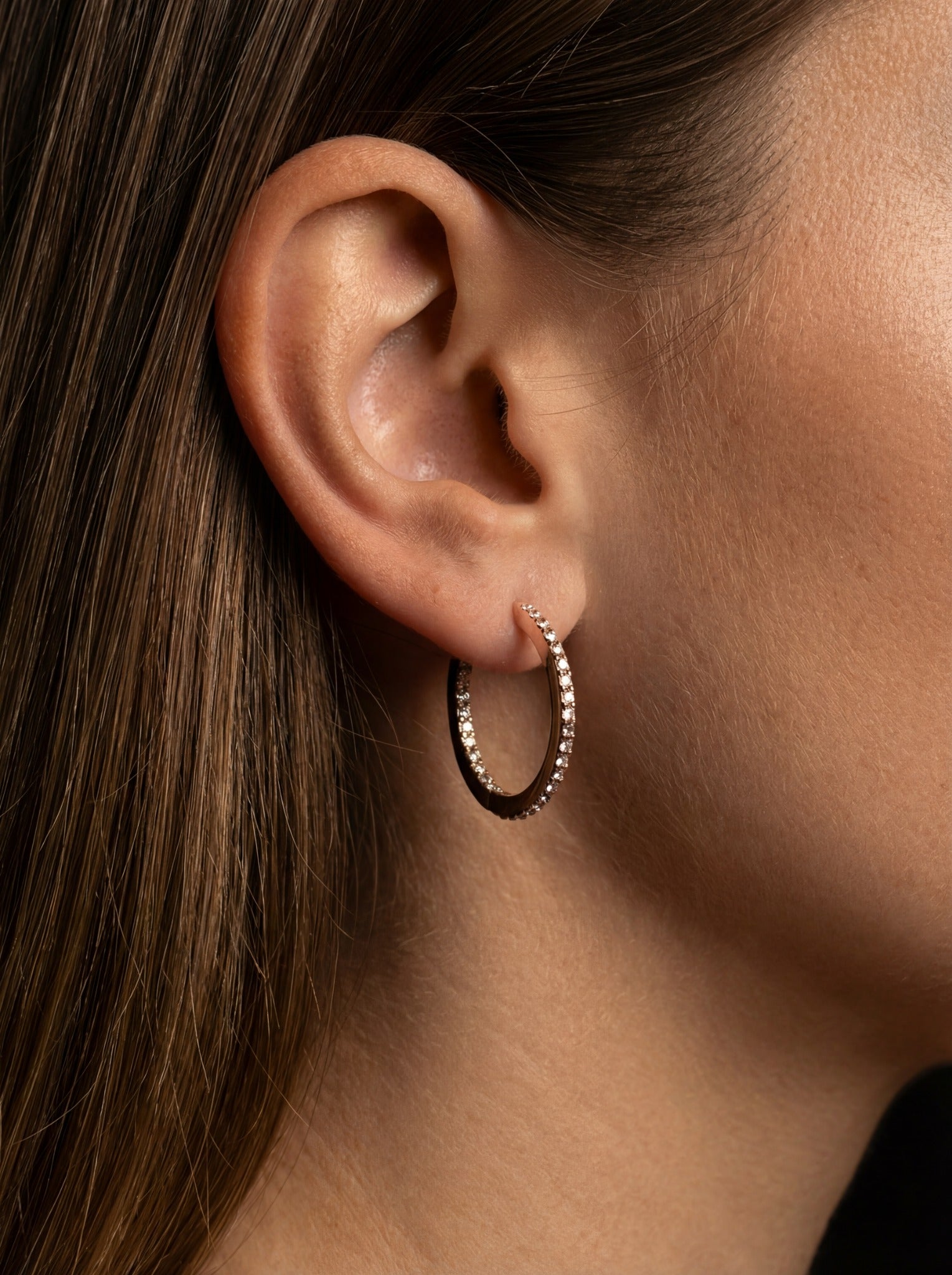 Někdy je největší odvahou být jemná. Model ORO nehraje na okázalost, ale na třpytivou intimitu. Jemná řada kamenů lemující ucho působí jako dotek světla. Ideální volba pro chvíle, kdy chcete působit upraveně a elegantně, ale stále se cítit uvolněně a svá.