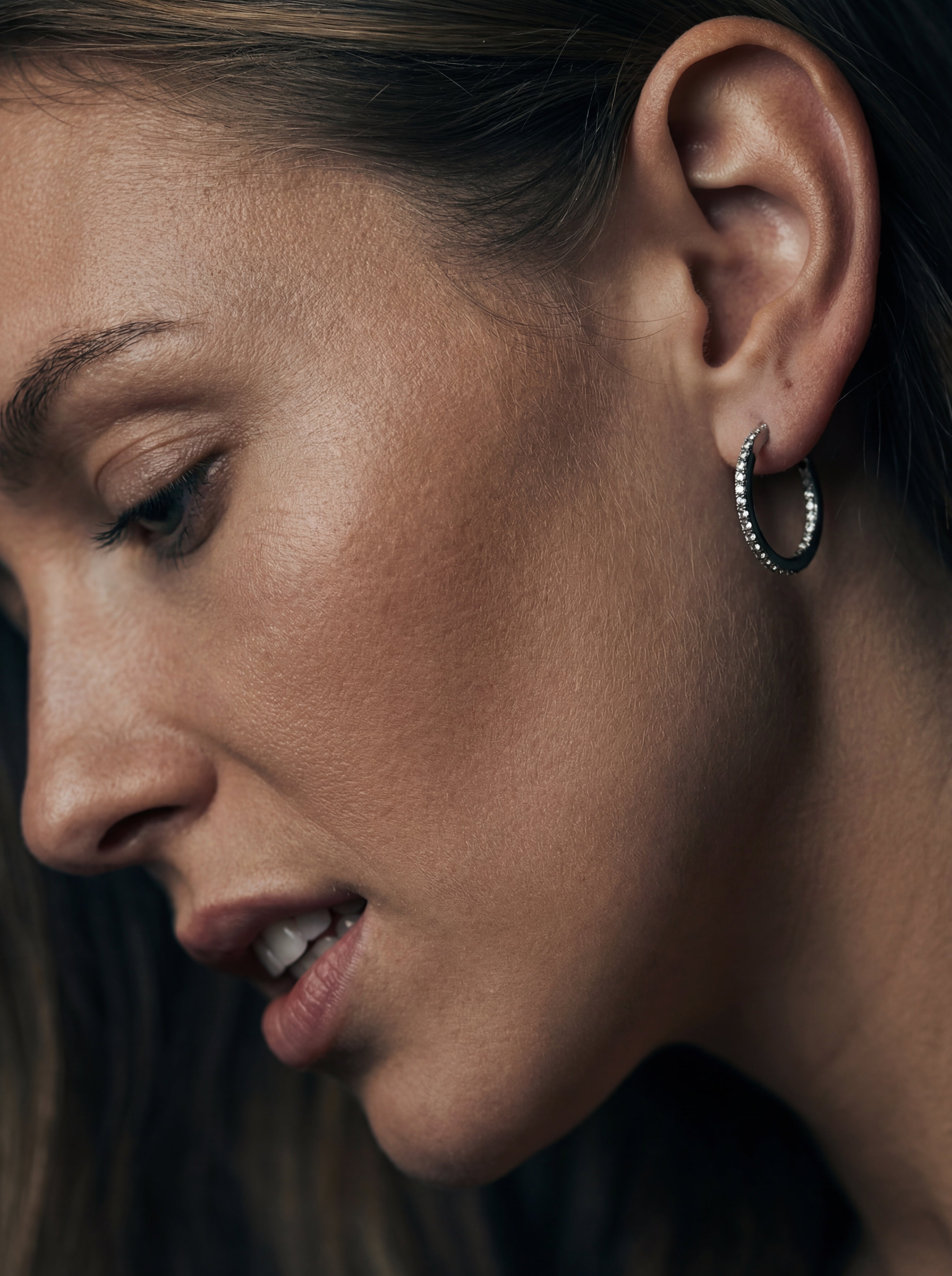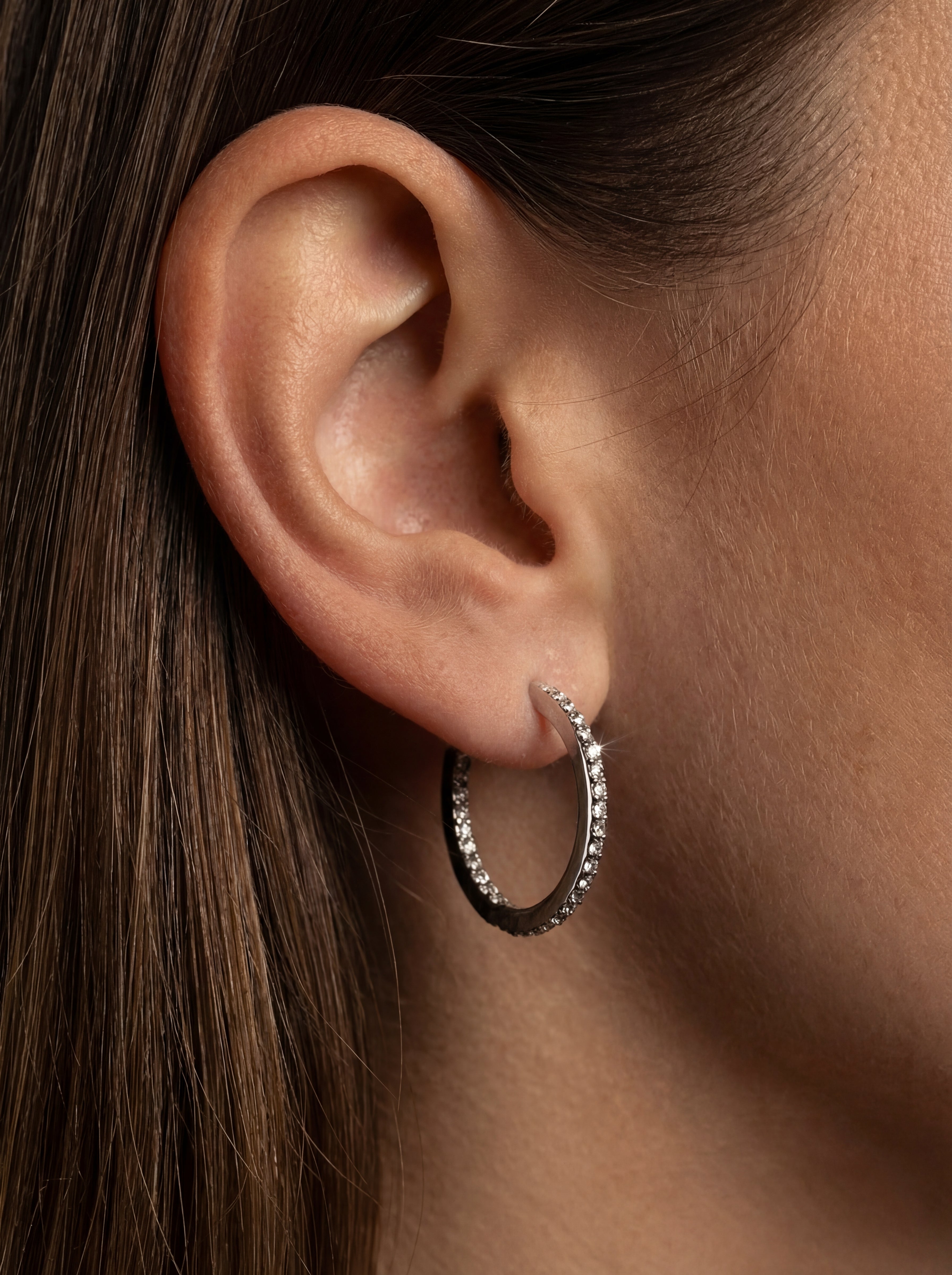 Někdy je největší odvahou být jemná. Model ORO nehraje na okázalost, ale na třpytivou intimitu. Jemná řada kamenů lemující ucho působí jako dotek světla. Ideální volba pro chvíle, kdy chcete působit upraveně a elegantně, ale stále se cítit uvolněně a svá.