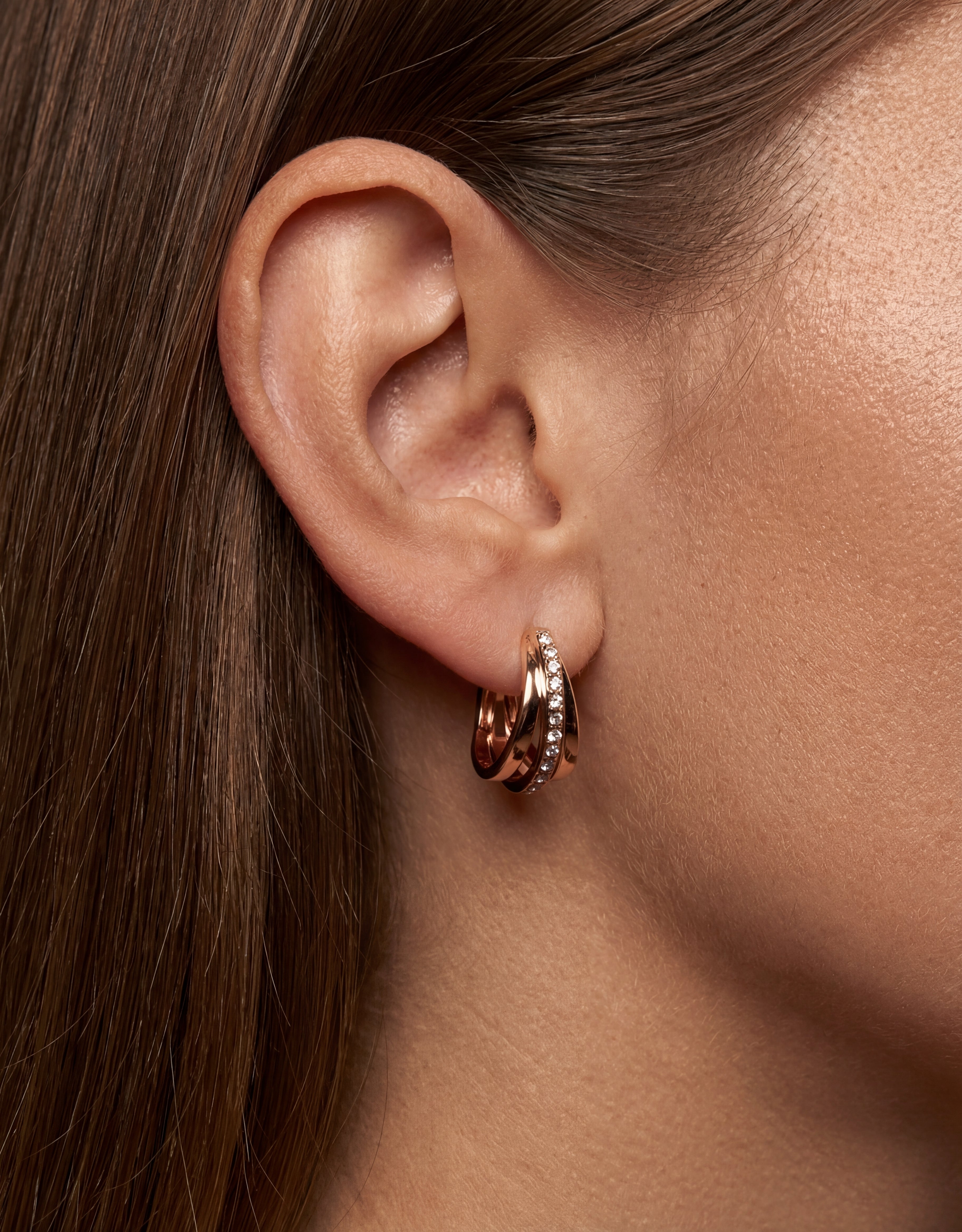 Jméno Velvet slibuje dotek luxusu a tento model to plní. Hladký, zaoblený tvar působí na uchu měkce jako samet a připomíná, že byste k sobě měla být vlídná. Uprostřed této jemnosti však září pevná cesta krystalů – symbol vaší vnitřní jiskry, která je chráněná a opečovávaná. Šperk, který vás pohladí po duši.